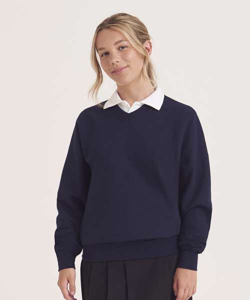 This v-neck sweatshirt is ideal for every school season and is made with twin-needle stitching for durability.