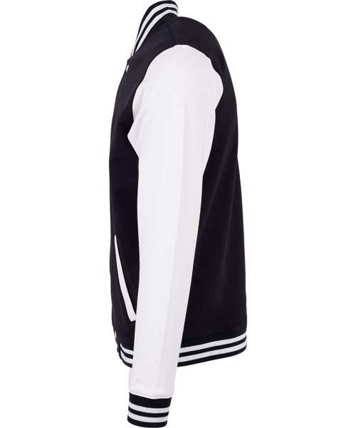 Sporty jacket for men in college style. Full-length button panel, wide ribbed hem and sleeve cuffs and side welt pockets. The cotton mix of the jacket is perfect for refinement and can easily be customised.