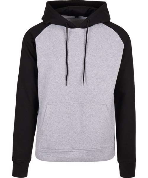 Raglan hoodie for men with contrasting sleeves. Hood, kangaroo pocket and wide cuffs on sleeves and hem provide the necessary comfort. The hooded sweatshirt is perfectly suited to be refined and can be easily customised.