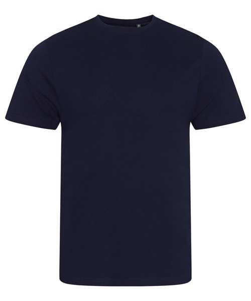 100% Organic cotton. Single Jersey. Ribbed collar. Taped neck. Side seams – non tubular body. Twin-needle detail at hem and sleeve. Set-in sleeves. Crewneck. Fashion fit. Size label only for easy rebranding.
