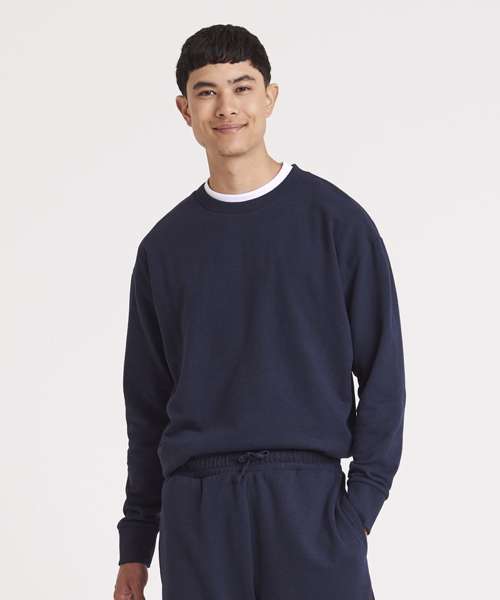 This sweatshirt uses a soft certified recycled cotton and certified recycled polyester fabric with a relaxed boxy fit. Combining style, comfort and materials with less impact, this sweatshirt is a great addition to a uniform, retail or club.