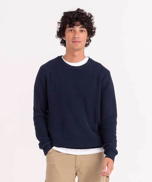 Working towards a more sustainable planet, the Taroko sweater is made from using 70% regenerated cotton waste and 30% recycled polyester. This stylish sweater features crew neck, ribbed cuffs and hem with a seed stitch for a truly unique layer. Waffle knit and fashion fit.