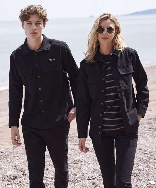 For the carefree; those with a youthful spirit; those who work hard and play harder. This trend-led overshirt has no restrictions. Garment washed, this shacket is made up in durable drill weave, ready to take on workwear and streetwear. Clean mitred cuff and placket are completed with button fastenings paired with oversized mitred patch pockets. Ready to be rebranded, it comes tag-free.