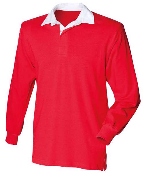 The long-sleeved plain rugby shirt has ample space to display a bold slogan, logo or crest making it perfect for everyone from fashion brands to traditional clubs. Made from 100% cotton it has a traditional woven rugby collar, self-fabric facing on side vents and elastane reinforced cuffs exemplary of the quality design detail Front Row is known for.