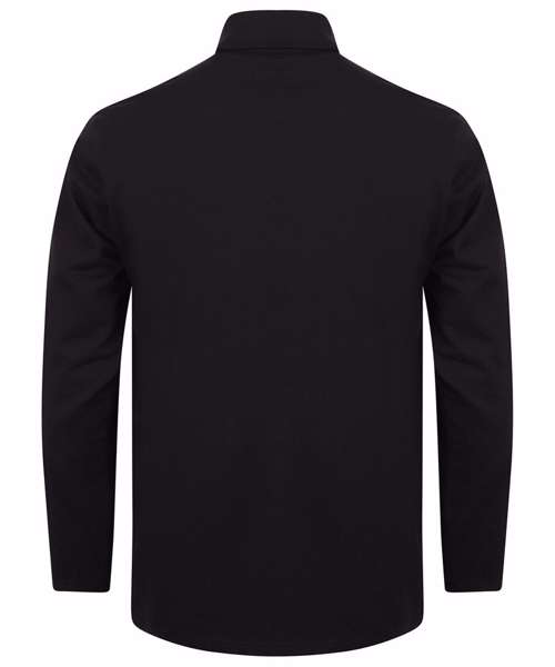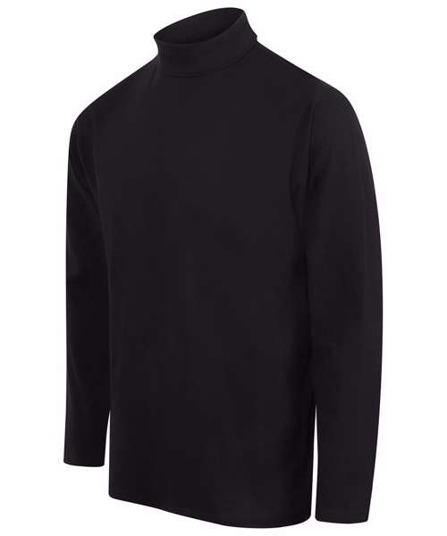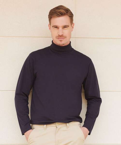 Cotton rich with double thickness rib roll neck. Reinforced shoulders and neck. Twin-needle stitching. Hemmed cuffs.