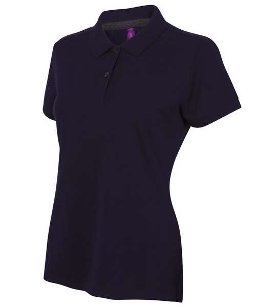 Modern Ladies fit with shaped side seams. Lightweight micro-fine piqué with a short point collar, fitted sleeve and cuffs. Micro-fine piqué is ideal for printing. 2 Button placket, DTM buttons. Contrast herringbone tape in back neck. Henbury Cut-out back neck brand label.