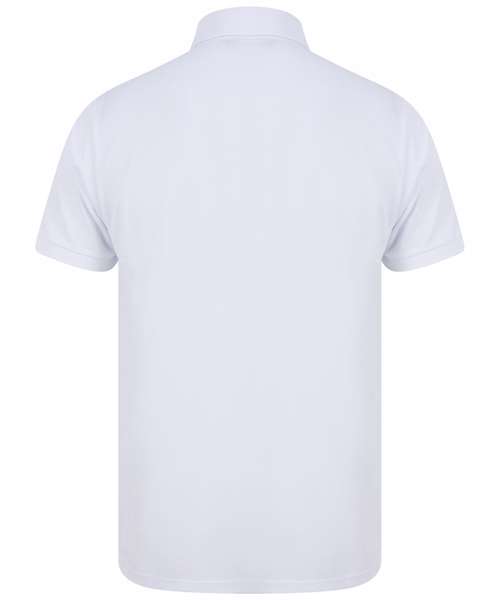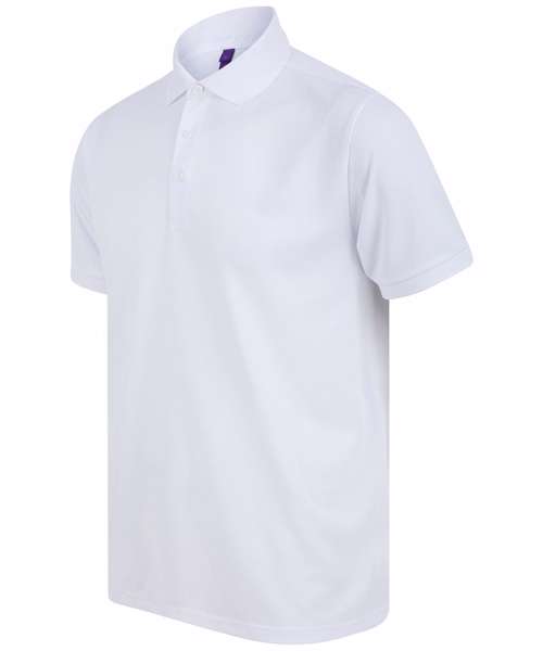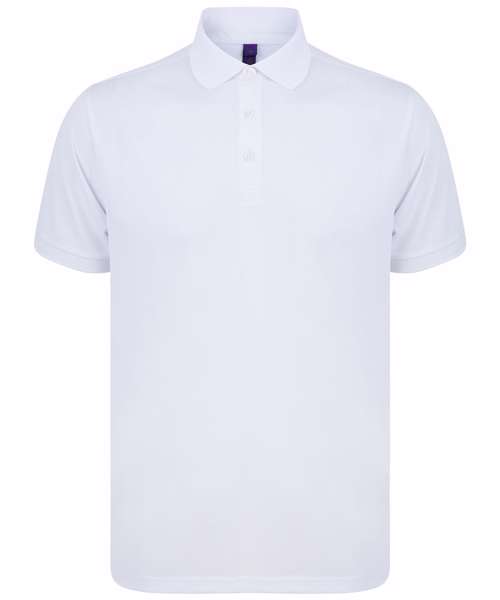 Polo shirt made from recycled polyester yarn with wicking properties. Regular fit with 3 button placket. Henbury stand-up collar. 1x1 ribbed collar and cuffs. Dyed to match buttons.