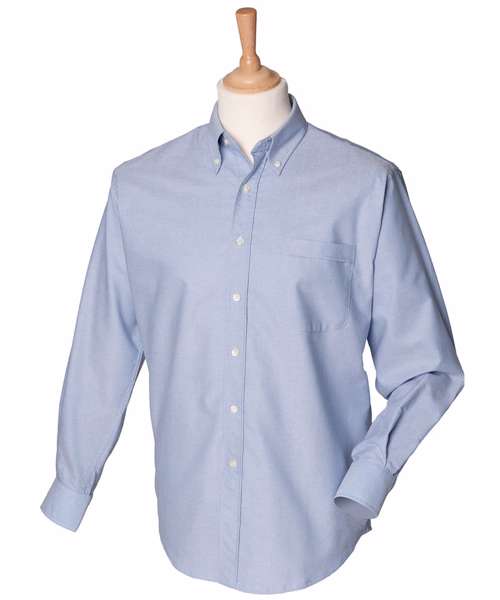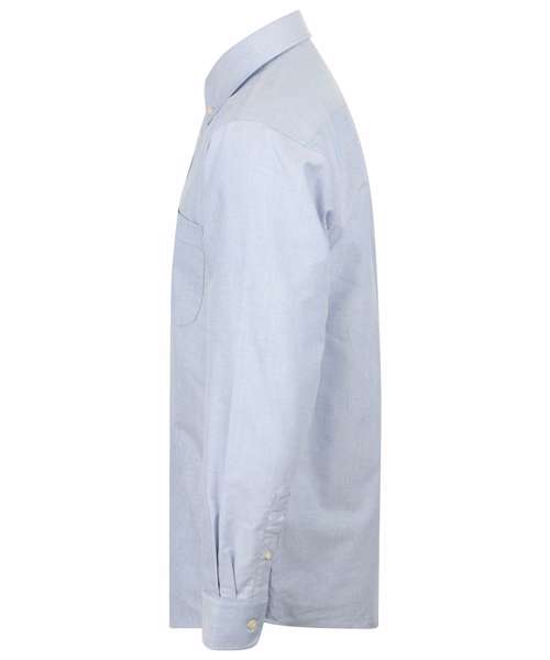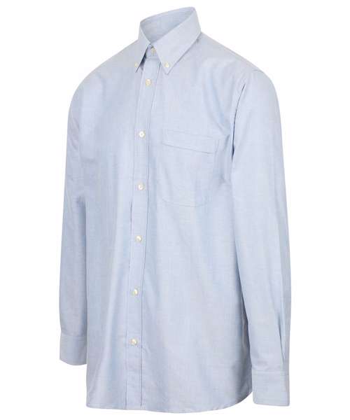 Cotton-Rich Classic Oxford fabric. Wrinkle resistant finish. Left breast pocket. Button down collar. Back yolk with centre box pleat. Adjustable cuff. Pearlised buttons on blue options, DTM on all others.
