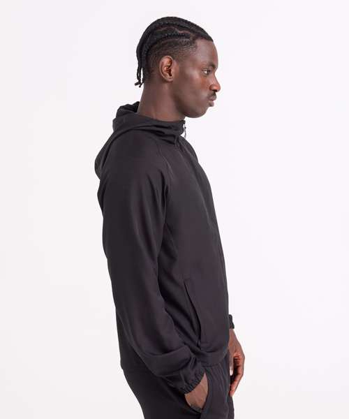 Relaxed fit. Quick-dry wicking fabric. Raglan sleeves. Elasticated cuffs. Three-panelled hood. Zipped front pockets. Hood adjustment toggles. Hem adjustment toggles. Tear-away label. Contains recycled polyester.