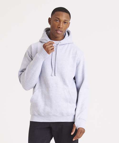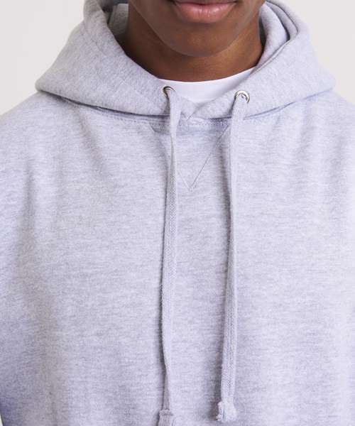 Heavyweight hoodie with twin needle stitching detailing and three panel double fabric hood with thumb holes in the cuffs. Flat lace drawcords and kangaroo pouch pocket and hidden phone pocket inside kangaroo pouch pocket with small opening for ear phone cord feed. Hidden ear phone loops with v-neck insert detail with hanging loop at back neck, locker patch and ribbed cuff and hem. Soft cotton faced fabric creates ideal printing surface. Simple tear out label makes it perfrect for rebranding. Brushed inner fleece.