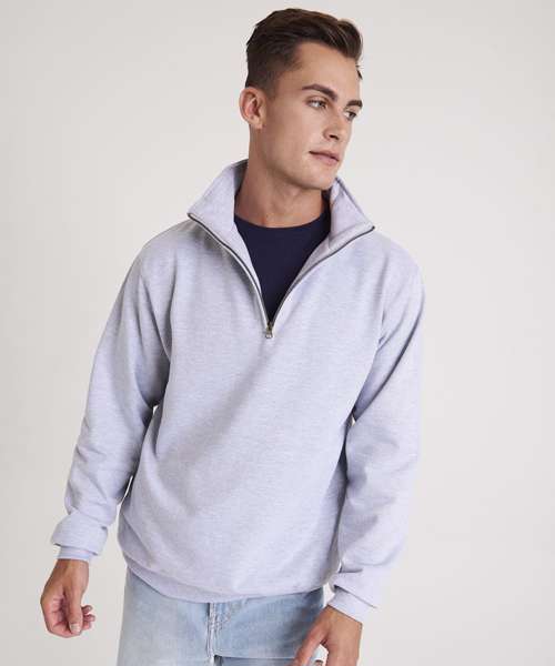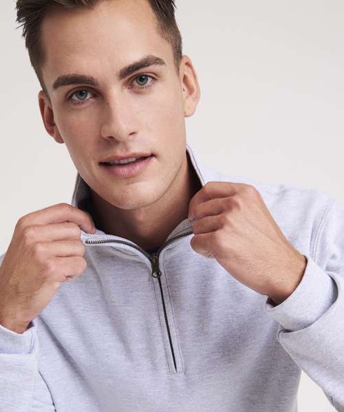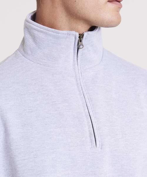 ¼ zip neck. Metal YKK zipper and puller. Ribbed cuffs and hem. Soft cotton faced fabric creates ideal printing surface. Simple tear out label makes it perferct for rebranding. Brushed inner fleece.