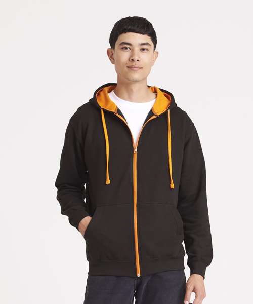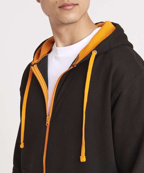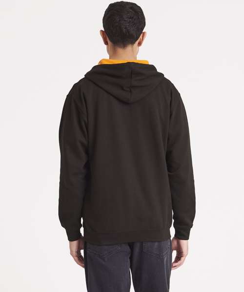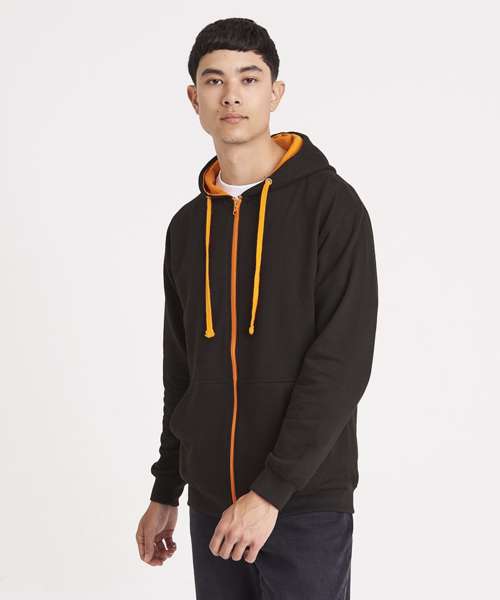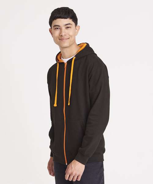 Full zip hoodie with contrast plastic zip. Twin needle stitching detailing. Double fabric hood with contrast inner. Contrast flat lace drawcords. Kangaroo pouch pocket. Ribbed cuff and hem. Soft cotton faced fabric creates ideal printing surface. Simple tear out label makes it perefct for rebranding. Brushed inner fleece.