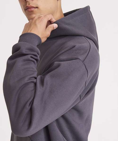 Oversized fit. Heavyweight. Three-panel, double-fabric hood. Kangaroo pouch pocket with inner phone pocket. No drawcords. Ribbed cuff and hem. Brushed inner fleece. Tear-away label. 100% cotton-faced hood.