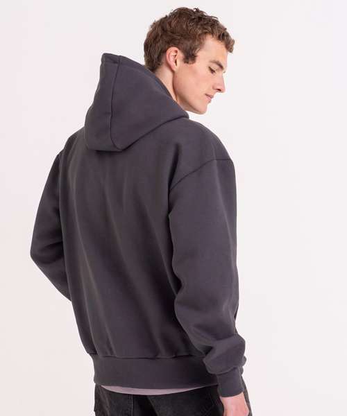 Oversized fit. Heavyweight. Three-panelled double-fabric hood. Double-end YKK zip. No drawcords. Ribbed cuffs and hem. Brushed inner fleece. Tear-away label. Contains recycled polyester.