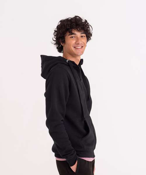 Heavyweight full zipped hoodie. Twin-needle stitching detail. Three panel hood with single Jersey inner. Flat lace drawcords. Split kangaroo pouch pocket. 2 x 1 ribbed cuffs and hem. Plastic zipper and puller with chin protector. Flat lock stitching detail on pocket. Soft cotton faced fabric creates ideal printing surface. Simple tear out label makes it perfect for rebranding. Worldwide Responsible Accredited Production (WRAP) certified production. Brushed inner fleece.