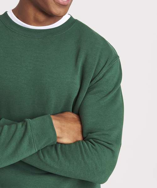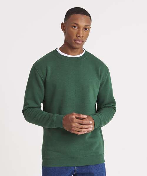 Crew neck sweatshirt. Set-in sleeves. Taped neck. Stylish fit. Brushed inner fleece. Simple tear-out label makes it perfect for rebranding. Twin-needle stitching. Ribbed collar, cuffs and hem. Soft-cotton faced fabric creates ideal printing surface.