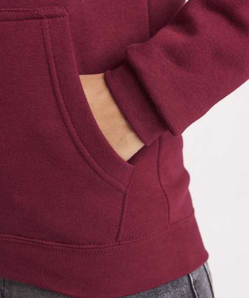 Twin-needle stitching detail. Double-fabric hood. No drawcords – to comply with EU regulation. Kangaroo pouch pocket. Ribbed cuffs and hem. Brushed inner fleece. Soft-cotton faced fabric creates ideal printing surface. Simple tear-out label makes it perfect for rebranding.