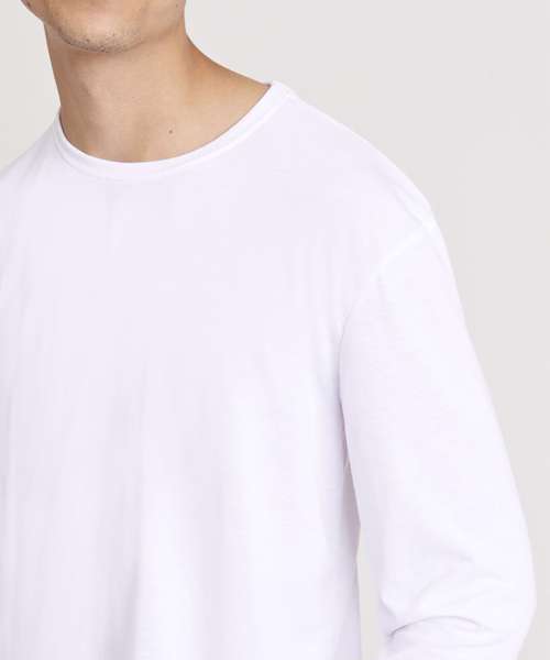 Modern fit long sleeved T. Size tab label. Triblend fabric for style and comfort. Taped neck. Twin-needle stitching on sleeves and bottom hem. Ribbed crew neck style. soft-feel fabric. Side seams. Set-in sleeves.
