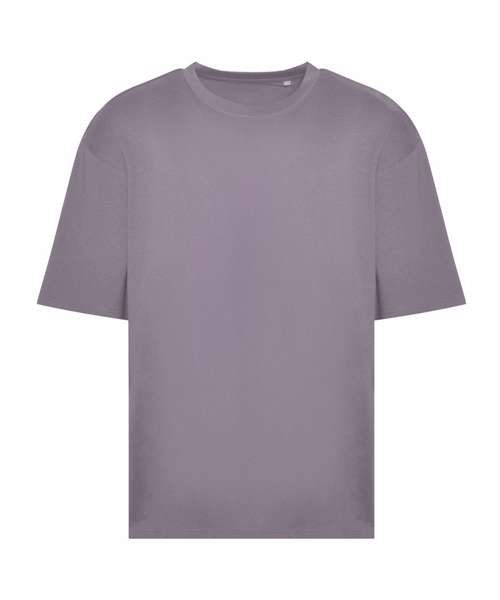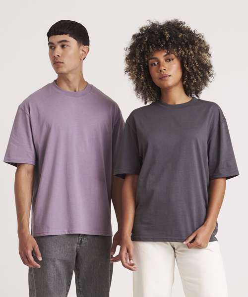 Oversized fit with side seams. Short sleeves. Ribbed crew neck style, with taped neck. Set-in sleeve. Size label only, for easy rebranding – colour-coded black for unisex. Combed ringspun cotton for ultra comfort. Surface excellent for print or embroidery. Twin-needle stitching detail on sleeves and bottom hem.