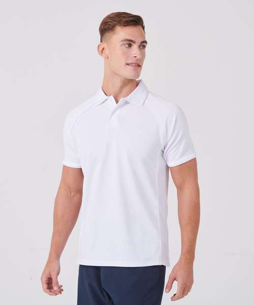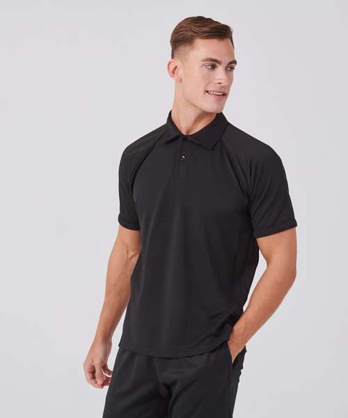 Made using Coolplus® specially modified polyester fibres enable rapid absorption of perspiration from skin surface. Piping along raglan seams and down front and back. 2 button placket self fabric collar.
