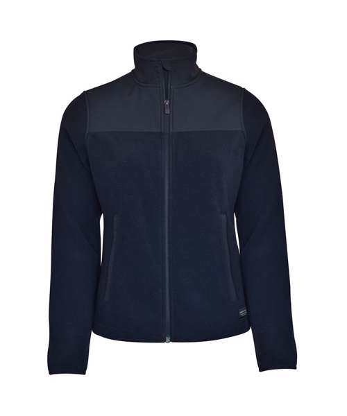 Fleece: 100% Recycled polyester. Contrast fabric: 100% Polyester (yoke, pockets and outside collar)