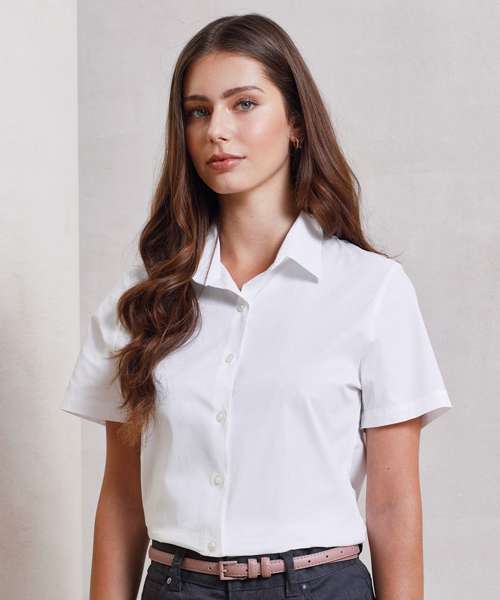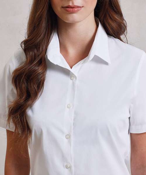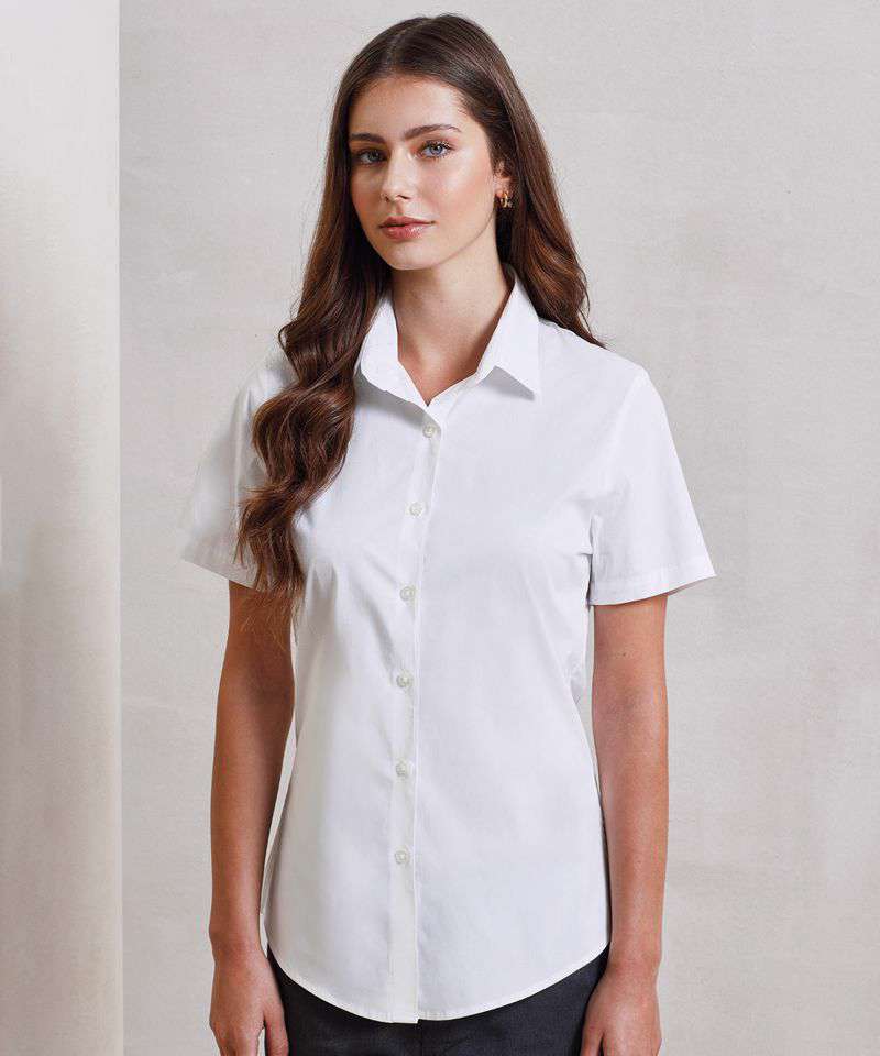 PR346: Women's stretch fit cotton poplin short sleeve blouse