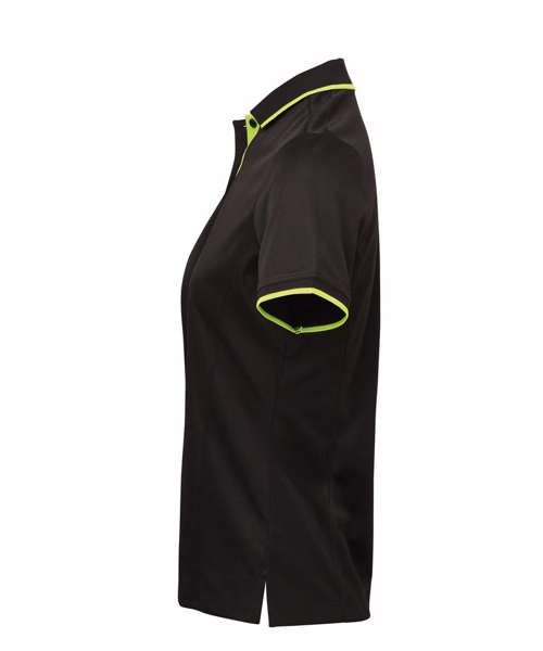 A smart choice for businesses looking for workwear that reflects company branding, these polo shirts offer a two-tone contrast colouring. The ribbed knit collar and cuffs is colour tipped as is the neckband and placket. There is a three button fastening on the placket for a casual unbuttoned look or smart fastened up style. The Coolchecker fabric is designed to draw moisture away from the body and encourage air flow, so the wearer remains fresh and cool throughout the day. Side panels create an aesthetically pleasing fitted style for women.