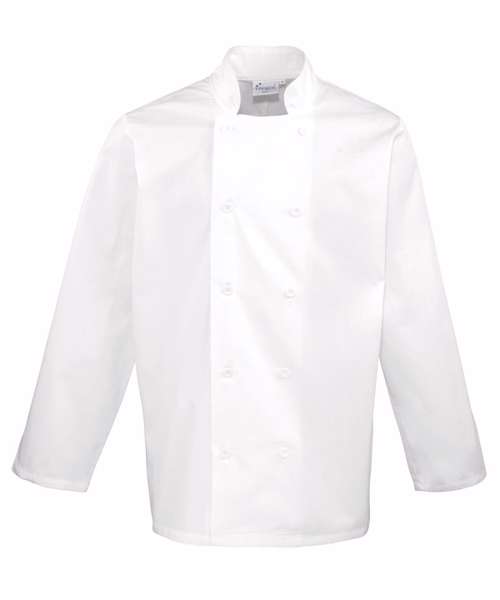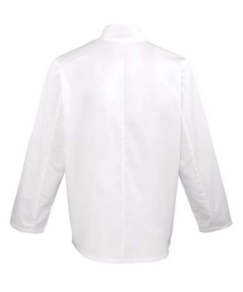 An easycare long sleeve chef's jacket with a ten-button wrap over style fastening. To withstand the demands of repeated washing, the buttons are long-life resin buttons. A smart jacket for chefs with a mandarin collar for a streamlined look. Available in black, white and steel across a wide range of sizes.