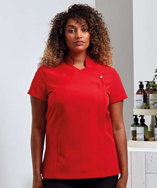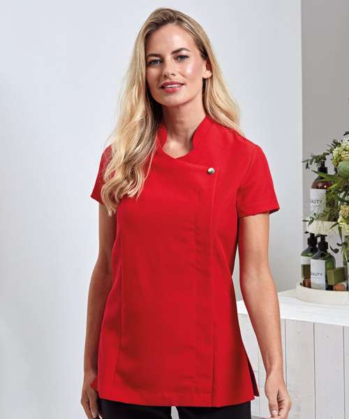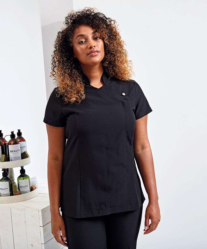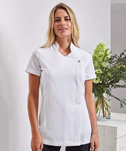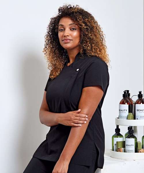 Premier's 'Blossom' beauty and spa tunic has a feature button front fastening with a concealed zip. The short sleeves and princess seams along with side vents and a black pleat make for a practical garment that is easy to work in whilst retaining style.