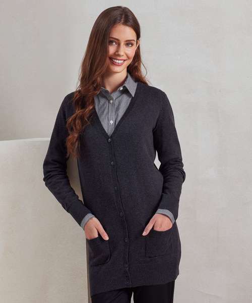 Ladies can layer up in style with this fashionable long-length knitted cardigan. Reflecting the latest high street trends for cosy knits, this cotton rich ladies cardigan can be worn loosely over a blouse or fastened up with buttons. The ribbed knit plunging v-neck, cuffs and hem make for a comfortable fit offering excellent shape retention.