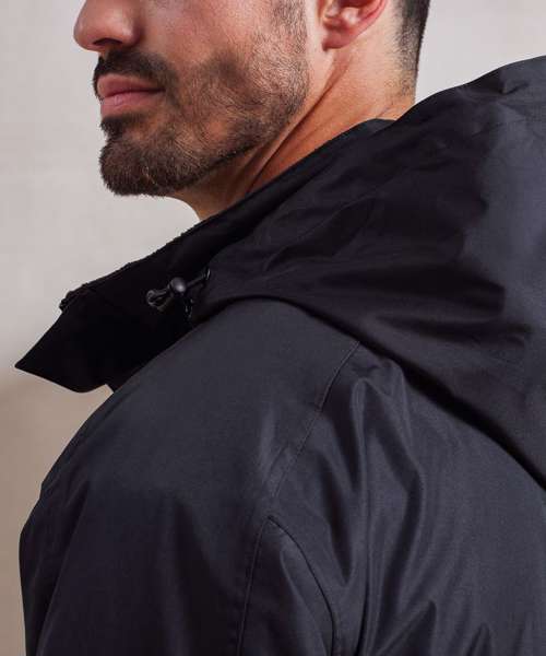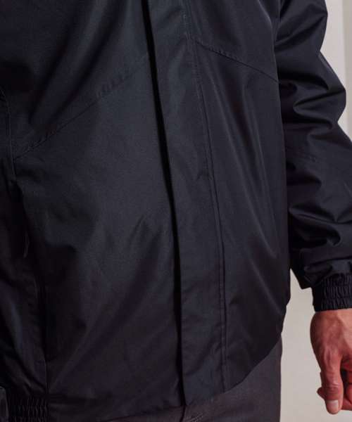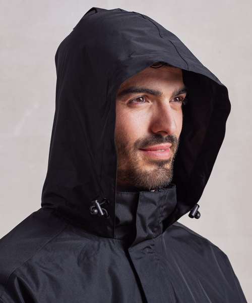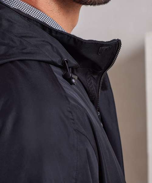 With Premier's Hydrochecker fabric guaranteeing a weatherproof jacket. Fully lined with warm microfleece and a handy inner patch pocket. Hidden zip for embroidery access. High neck cadet collar which facilitates a fold-away drawcord hood. Full zip-through with storm flap and hook and loop fastening. Outer fabric with PVC coating and taped seams for additional waterproofing. Side seamed zipped pockets with fleece lining. Part elasticated cuffs with adjustable hook and loop fastening. Part elasticated hem.Waterproof rating of 5000mm conforms to UKCA & CE EN343 1:1