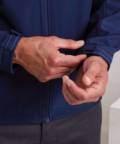 A men’s two-layer softshell jacket carrying Premier’s Windchecker®️ trademark for wind and water resistance through the fabric. Made with 100% certified recycled polyester with a bonded fleece inner layer, this zip-through softshell jacket features hook and loop strips to the cuffs for adjustment around the wrist. There are two handy zipped side pockets and an elasticated drawcord hem for fit. A great versatile outer layer for casual and corporate dressing for men.