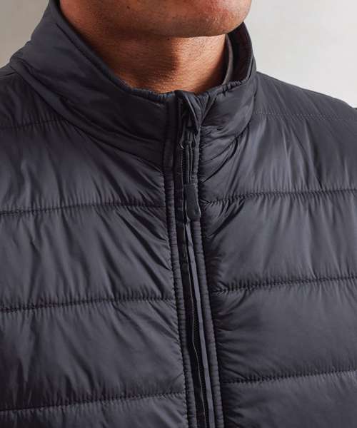 A lightweight and water-resistant padded gilet made from 100% certified recycled nylon and polyester for a great more sustainable outerwear solution. Horizontal stitching across the gilet creates baffles to ensure even distribution of the insulation within. This men’s ‘Recyclight’ gilet is filled with recycled synthetic down for warmth, whilst also being lightweight enough to fold away in its own stuff sack. Full zip-through style with two zipped side pockets and a handy open pocket to the inner lining. A zip in the inner lining provides full embroidery access, offering a great corporate or teamwear solution that can be branded accordingly. The fashionable and versatile nature of this bodywarmer also means it can be worn as an everyday leisurewear style.