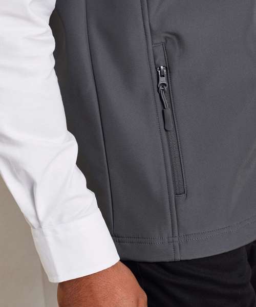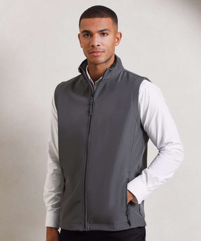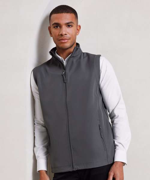 A men’s two-layer softshell gilet carrying Premier’s Windchecker®️ trademark for wind and water resistance through the fabric. Made with 100% certified recycled polyester with a bonded fleece inner layer, this zip-through softshell bodywarmer features handy zipped side pockets and an elasticated drawcord hem for fit. A great versatile outer layer for casual and corporate dressing for men.