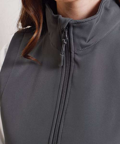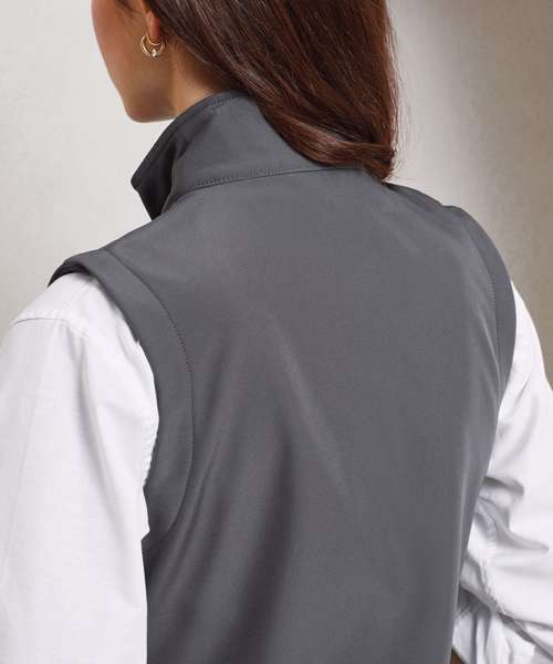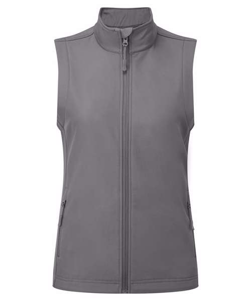 A women’s two-layer softshell gilet carrying Premier’s Windchecker®️ trademark for wind and water resistance through the fabric. Made with certified 100% recycled polyester with n bonded fleece inner layer, this zip-through softshell bodywarmer features handy zipped side pockets and an elasticated drawcord hem for fit. A great versatile outer layer for casual and corporate dressing, featuring a curved hem and stitched side panels for a more feminine fit.