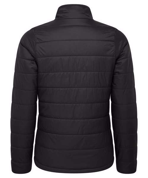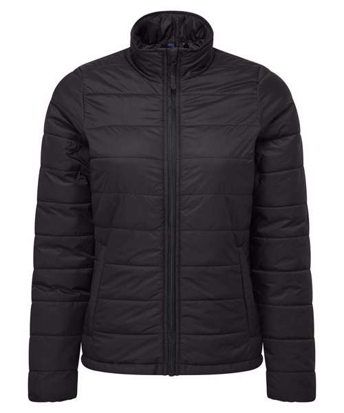 Women’s padded zip-through jacket with horizontal stitching to form baffles, ensuring an even distribution of insulation. Covered zip with chin guard and zip guard to the inner. Styled with a cadet collar. Two welt jet zipped side pockets with a single open pocket to the inner for handy storage. Elasticated cuffs measuring one inch wide. Full embroidery access to the entire jacket through an internal zip in the lining. Lightweight and folds downs easily into its own stuff sack. Made with 100% certified recycled fabrics.