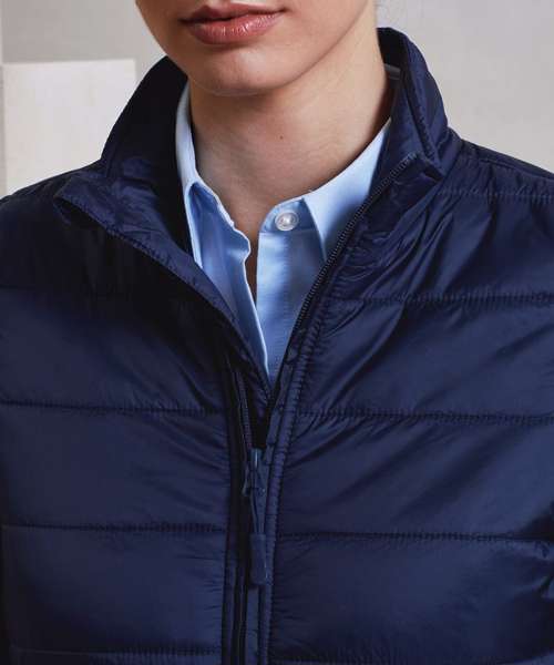 A lightweight and water-resistant padded jacket made from 100% certified recycled nylon and polyester for a great more sustainable outerwear solution. Horizontal stitching across the jacket creates baffles to ensure even distribution of the insulation within. This women’s ‘Recyclight’ jacket is filled with recycled synthetic down for warmth, whilst also being lightweight enough to fold away in its own stuff sack. Full zip-through style with two zipped side pockets and a handy open pocket to the inner lining. A zip in the inner lining provides full embroidery access, offering a great corporate or teamwear solution that can be branded accordingly. The fashionable nature of this jacket also means it can be worn as an everyday leisurewear style.