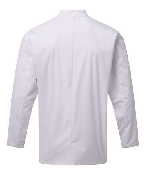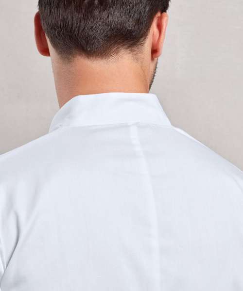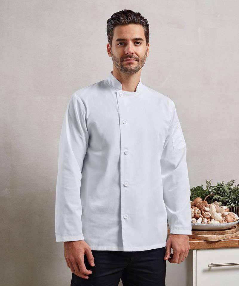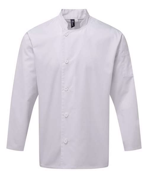 A durable long sleeve chef's jacket that fastens down the right hand side of the body with five long life resin buttons. On the upper left sleeve there is a handy double pocket pen compartment. This jacket is styled with a mandarin collar and is available in Black and White and offers great value for money.
