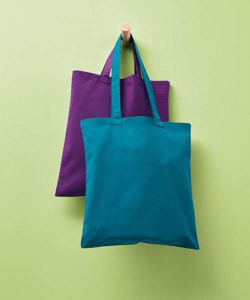 Classic cotton shopper. Short handles, 35 x 2.5cm. Inside hemmed sewing. Cross-stitches at handle. Perfect print surface.