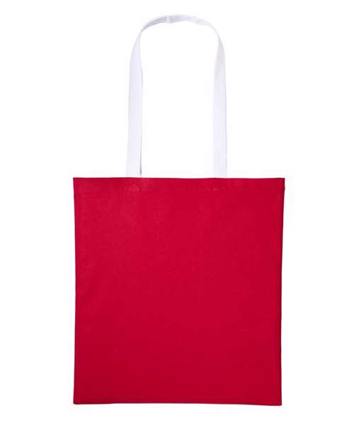 Two-tone cotton shopper. Long handles, 70 x 2.5cm. Inside hemmed sewing. Cross-stitches at handle. Perfect print surface.