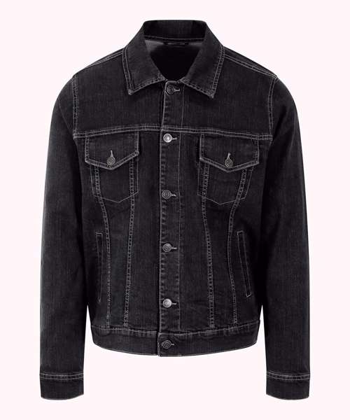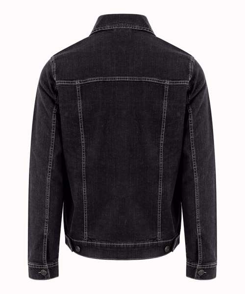 Cotton/elastane blended denim jacket with classic denim styling. 4 pocket design, shank button placket, button cuffs and adjustable back. Fashion fit. Stretch denim. 4 pocket styling. Classic light and dark blue washes. Contrast stitching. Classic denim jacket panelling. Button cuff detail. Inside back neck hanger loop.