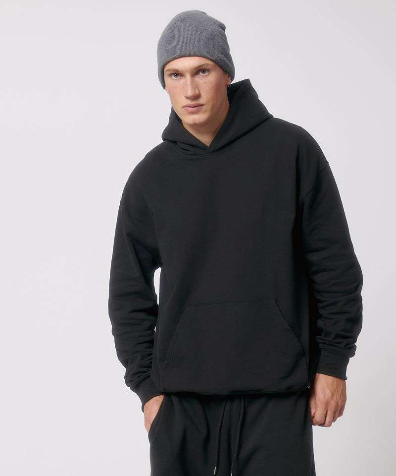 The unisex oversized boxy dry hand-feel hoodie sweatshirt with double-layered hood offers a relaxed feel with stylish details.