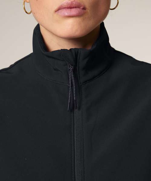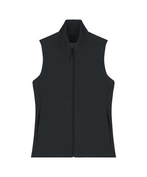 Premium women’s sleeveless softshell jacket. 315gsm stretch fabric with recycled TPU membrane and inside fleece layer. Water-repellent, breathable and windproof.