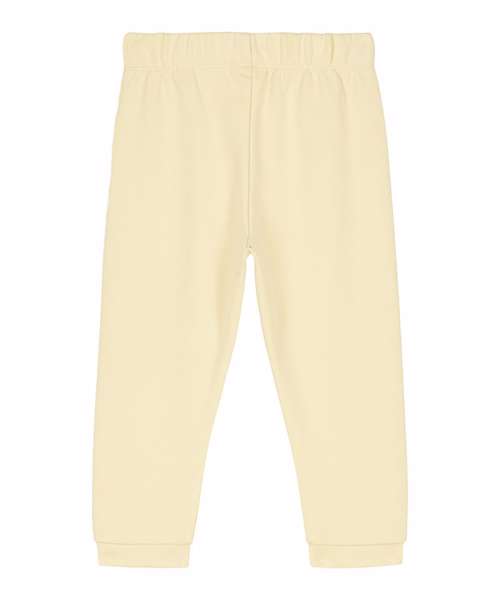 The iconic baby jogger pants. Medium fit. Self-fabric, elasticated, grown-on waistband. Narrow twin-needle at waistband base. No side seam for extra comfort. 1x1 rib at bottom leg cuff.