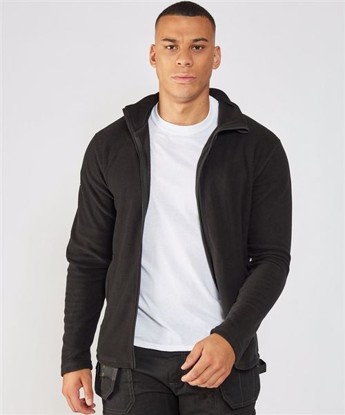 Full-zip fleece with embroidered branding on the right arm. Lightweight fleece fabric. Funnel neck. UKAS certified. ISO certified.